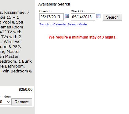 Just finished are two new improvements. One, is the ability to set Items For Sale as a per night charge, automatically based upon the number of nights selected. And the other improvement is that in the case of an error message to the user about a minimum stay not being met, the reservation form will not appear until the error is corrected.