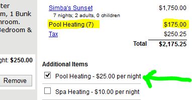 Now, when the guest select this item, the quantity will automatically be set to match the number of nights reserved (and the quantity dropdown will not show). This is useful for anything you sell where the quantity must match the number of nights (such as a pet fee, cleaning fee, parking charge, extra heating, etc.).