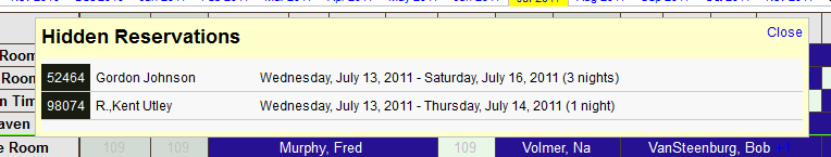 Another neat new feature is the ability to see hidden reservations.  Users might notice small plus links such as +1, +2, +3 on their calendars.  Clicking on these links brings up a nice box which lists all the reservations for the date that are not showing on the calendar.  This is a great way to keep track of pending reservations or canceled reservations.