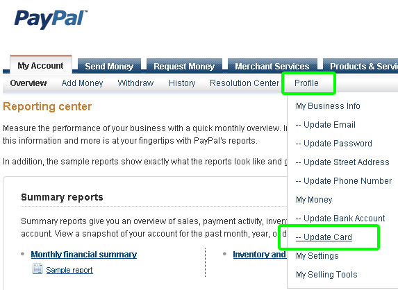 Updating an existing credit card in PayPal is easy. Simply log into PayPal at www.paypal.com.