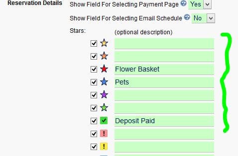 Now it is possible to add descriptions to the star icons, and when you hover over the star with the mouse, the description will appear as the image title. To set the descriptions, go to Settings, Preferences: Then, when you hover over the star, on both the internal calendar, and also in the Reservation Details …