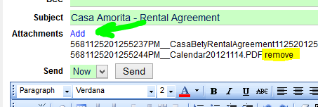 It is now possible to add attachments prior to sending an email. Just click the Add link.