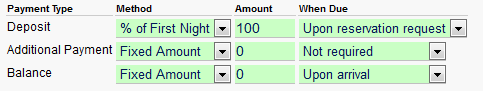 With the payment schedules, you can set how much to require at time of the reservation and how much to require X number of days before the first day of the reservation (if anything). Emails can go out automatically thanking guests for their payment and reminding them an upcoming payment is due.