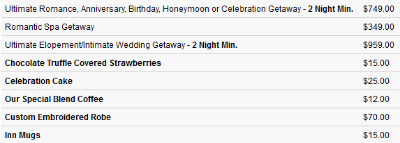Why not sell additional items on your reservation pages? This is a great place to sell items such as mugs, hats, or cookbooks. Or, get fancier with it, and add a package. Packages can be set to only show in certain date ranges, and can be limited by the number of days selected (such as You must select at least 3 nights to reserve this package). Packages also can be an add on price (such as an extra $100 for the Romance Package), or room prices can change completely when a packages is selected.