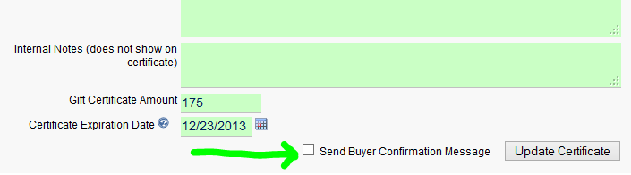 Over in the Gift Certificates section, we’ve added the ability to edit existing certificates. Also, when editing, there is now an option to send (or resend) the confirmation message to the buyer.
