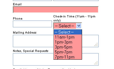 Such as: Check-in Time (11am – 11pm only) dropdown:11am-1pm#1pm-3pm#3pm-5pm#5pm-7pm#7pm-11pm