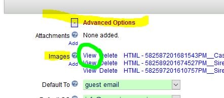 To upload an image, first upload as before, under the Advanced Options section. But now, it is necessary to know the URL to the image. So just click the View link which opens the image in a new tab, and copy the URL from the address bar. Or right click on View and select copy URL from your browser options.