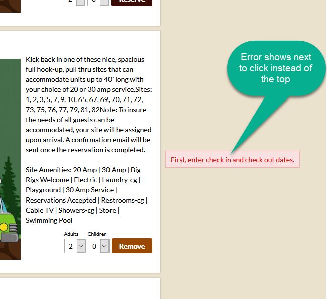 Another nice side benefit of this feature, is that the error message also shows next to the unit clicked. Rather than up at the top of the page, potentially above the viewable area of the guest’s screen.