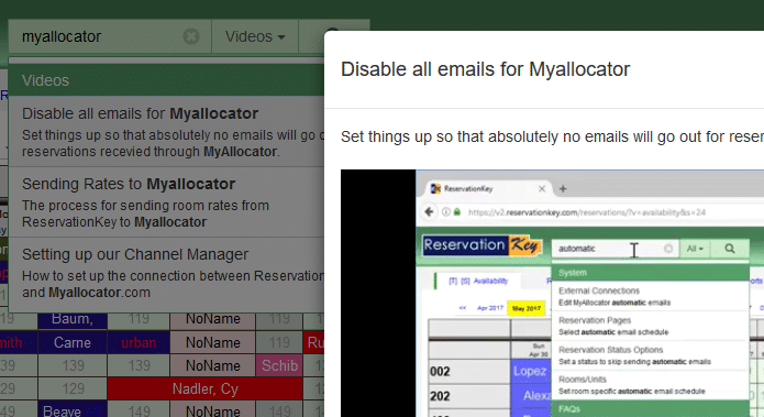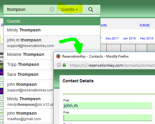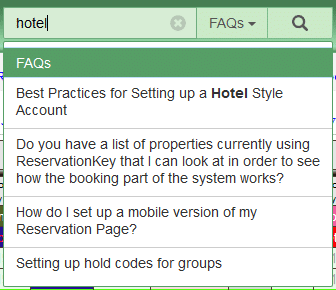 We now have a way to search six different sections of the system, quickly and as you type. You can search all six sections at the same time, or select from the drop down field to only show results from one section at a time. Here are some notes about each section. 1. Reservations Search …