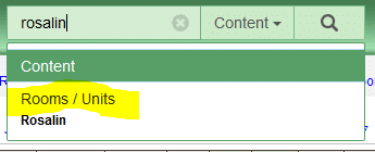 Search for any content you have added to the system. For example search by room name and you can jump directly to the edit screen for that room. Search by user name and go directly to the user settings page.