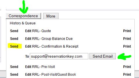 As always, even if you do not add a payment prior to confirming a reservation, you still can send a message manually, by clicking on the Correspondence button and selecting a message to send.