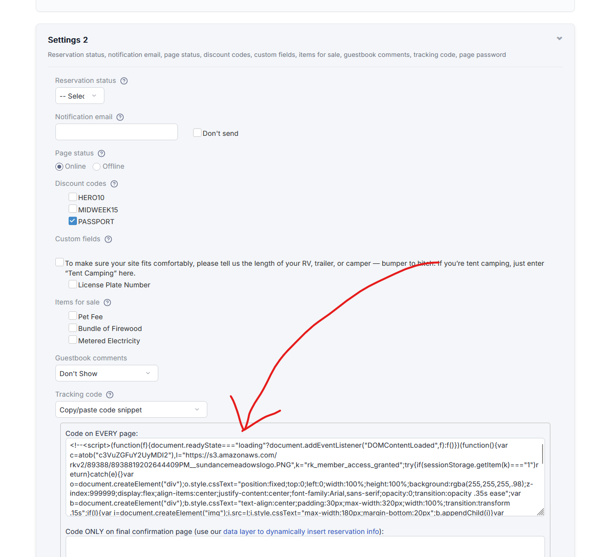- Paste a small JavaScript snippet into the custom code field