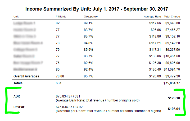 ADR and RevPar, two important financial performance indicators used in the hotel industry, are now easily found in the report Income Summarized by Unit.