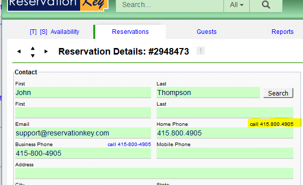 Phone numbers entered into the Reservation Details are now clickable to call. Skype or another phone program can open, depending on your what you have set in your browser. Or on a mobile device, your device’s phone.