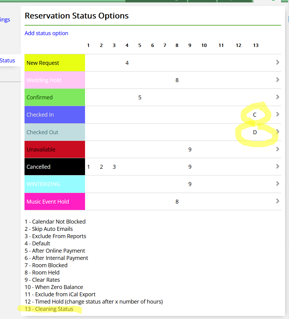 3. Optional – set up reservation statuses to toggle dirty/clean, when changed from the Reservation Details screen