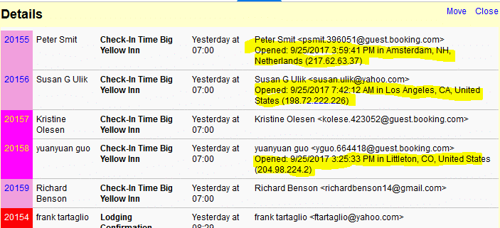 It is now possible to see when exactly an email sent from ReservationKey was opened. We automatically add tracking now to all emails sent from the system. When the email is opened ReservationKey records the time and location where it was opened. This is useful to verify that guess are receiving your emails and when they opened the message.