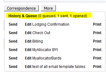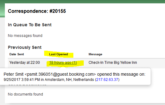 Clicking into a reservation, now in the Correspondence button we see a summary of emails.
