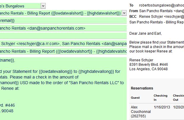 To email the report to the owner, once you have all the settings as you like them, click the Email button. From the email page you can create and save email templates for use in sending the report. You also can preview the report before sending it.
