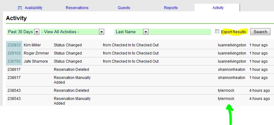 The Activity Tab in ReservationKey serves as a centralized location to track and review actions taken across your account. It includes logs of reservations, changes, messages, and more—helping you stay organized and in control.