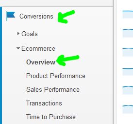 Now, your sales will show in your Google Analytics account. To view your activity, click Reporting at the top of your account. Then click Conversions, Ecommerce, Overview, on the left side of the page.