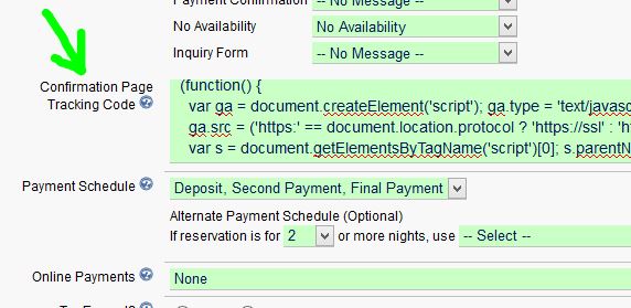 We’ve added additional functionality so that you now can use Google Analytics to track your sales. To use this feature, first add your Google Analytics code to your Reservation Page settings. Copy this code from your Google Analytics account.