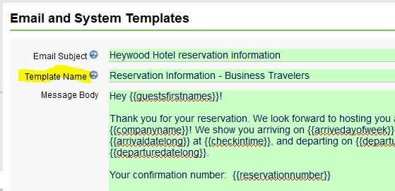 - This field allows users to assign an internal-only name to each template, separate from the subject line seen by guests.