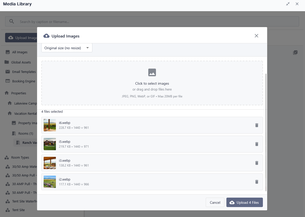 The new Media Library makes it easy to upload, organize, reorder, and manage images across your entire ReservationKey account, with faster uploads and a better guest viewing experience.