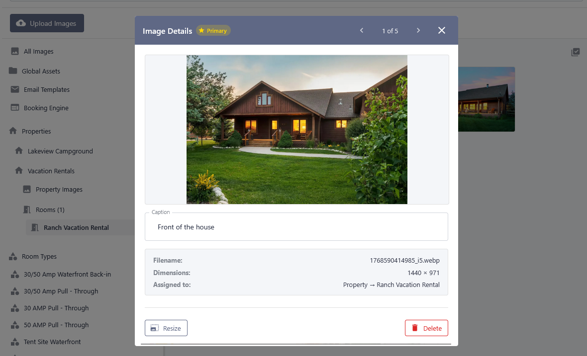 For hotel-style and campground users, unit-type images are also supported. Instead of uploading photos for every individual site, you can upload images once per unit type, saving significant time.