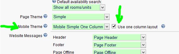 To set this up, go to Website Tab, Reservation Pages, and edit. Go to the themes section (near the top), and select which theme to use for mobile. We highly recommend using the new Single Column theme, and make sure you check the box to use the One Column Layout.