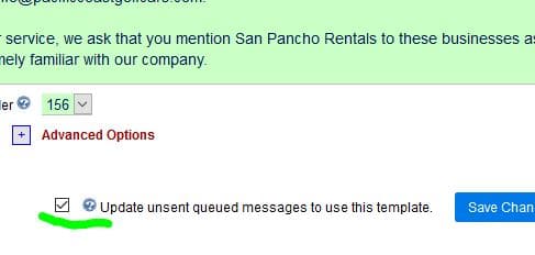 This can also be used to remove templates from the queue, in case you decide you no longer want to send out a particular message. NOTE – this will only remove emails added after this feature was developed. With the development of this feature we are now saving the template ID number with messages saved into the queue, so now we can update and remove based on the ID number (previously we matched based on the title being exactly the same). So, the remove feature will only remove templates which match the ID number that is saved in the database. Because prior to this feature we were not saving ID numbers, those templates would still need to be manually removed.