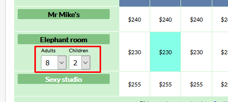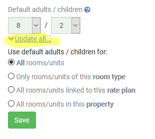 Now, it is possible to set the default number, and the price showing will reflect any surcharge or discount for based on the number of guests above or below base occupancy. Base occupancy continues to be set in the Rate Plan/Rule. This new setting, for default number of guests is in the Room/Unit and Fraction settings.