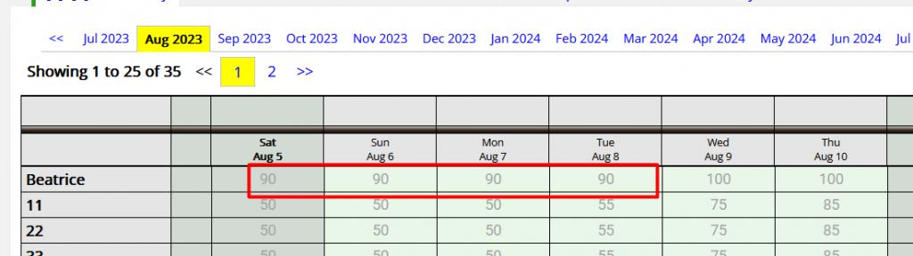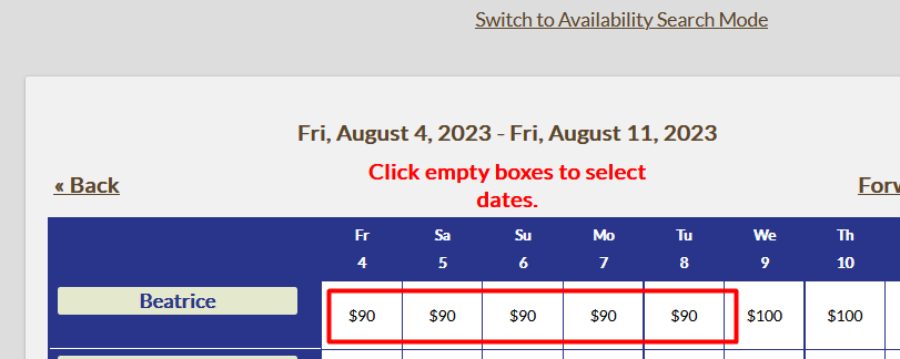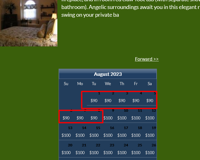 Here, we can see I discounted $10 per night for one week from "today" on these places in the system: