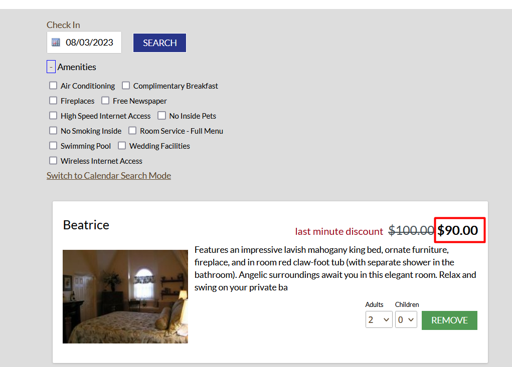 Note: for multiple rate plans on a reservation page, this only works with those plans. If the primary plan attached to a room/unit is different, then on the calendar view, if the rate adjustment doesn't apply to the primary plan, then it won't show. Same for internal calendar. The easy solution is simply to also apply this rate adjustment to the primary rate plan for each room/unit.