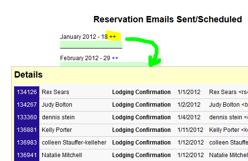 We’ve just completed a new report, Monthly/Yearly Statistics. With this report you can quickly see monthly and yearly totals of various categories, such as new reservations, payments, expenses, and emails.. Click on the “++” link in order to drill down and open a window that shows the exact items for that day or month. For …