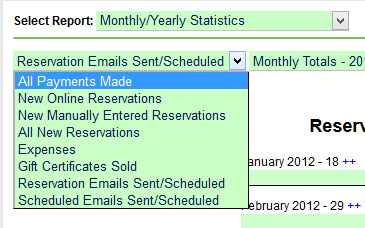 We’ve just completed a new report, Monthly/Yearly Statistics. With this report you can quickly see monthly and yearly totals of various categories, such as new reservations, payments, expenses, and emails..