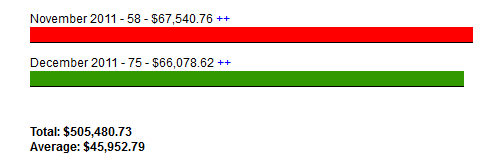 The red bar always shows your biggest entry. At the bottom of the chart there is a summary showing the total and average amounts.