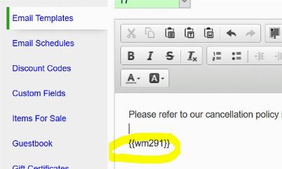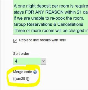 It is now possible to use a merge code for a website message in order to add the message text to an email template. This could be useful for a situation where your cancellation policy on your reservation page is the same policy you want to include in an email template.