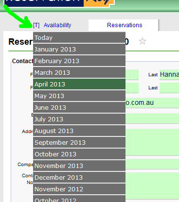 Now there is another way to directly select which month to jump to on the internal availability calendar. This is useful when you need to go to a month different from the last viewed month, without having to load the calendar first (such as when you are on the Reservation Details screen and need to jump to a different month on the calendar).