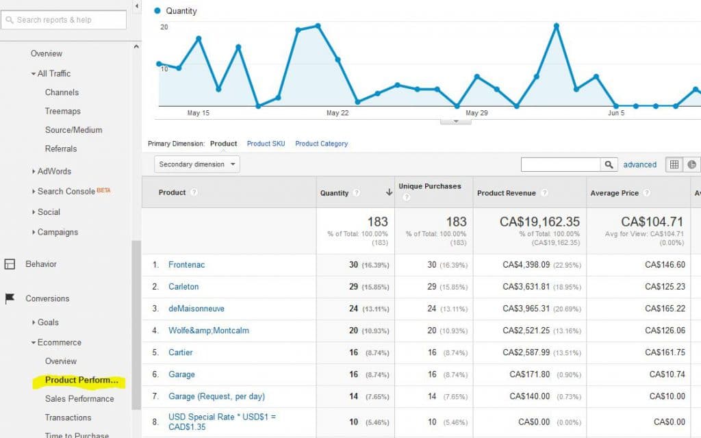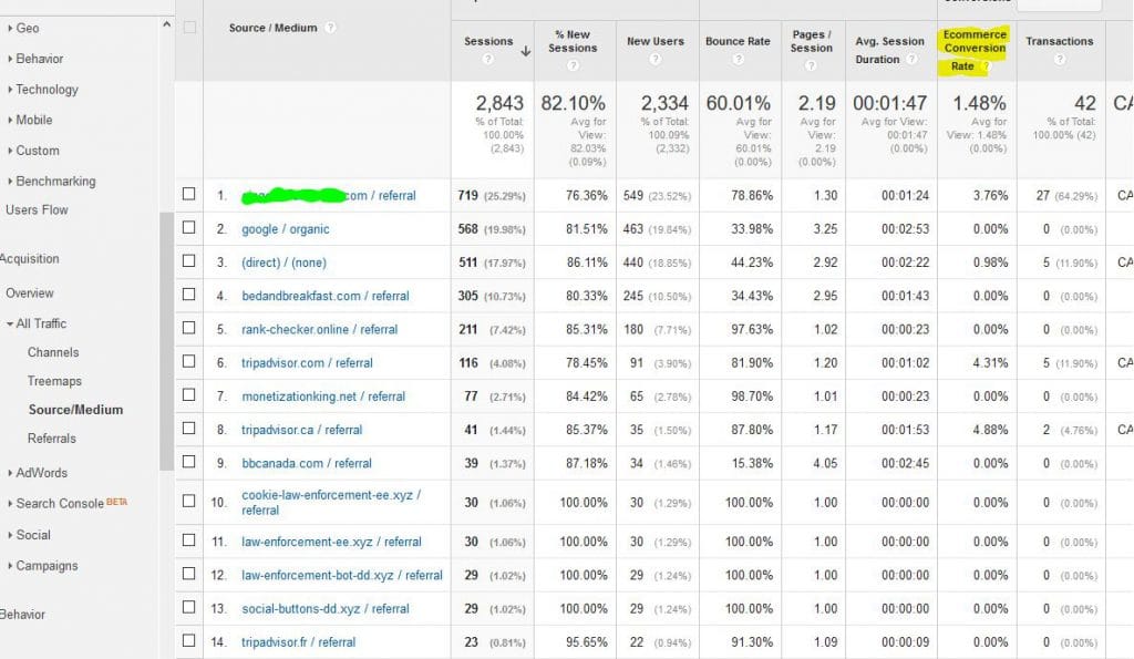 The above code is what we build when just the Analytics ID is used. When your Google Analytics account is set up properly you can now see lots of data including Acquisition data and E-Commerce data. Below are some screenshots from one of our users who has his account set up to use this feature.