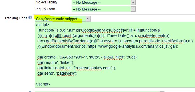 Also, we continue to support the older style of Google Analytics. If the tracking code you paste into the field for this in the Reservation Page settings contains “analytics.js” then we switch to the new method. Otherwise we use “ga.js” which is the old style.